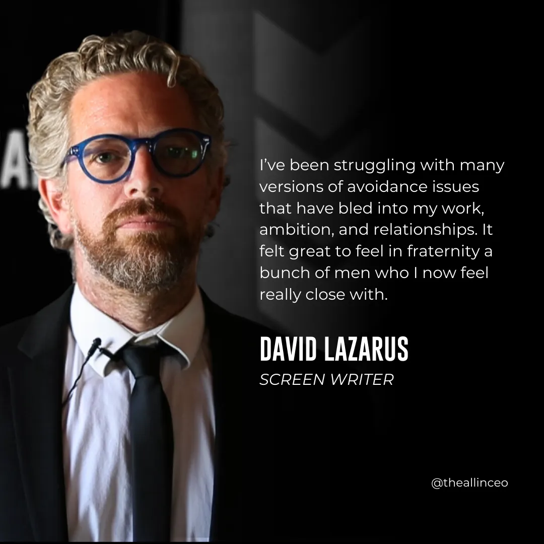 "I’ve been struggling with many versions of avoidance issues that have bled into my work, ambition, and relationships. It felt great to feel in fraternity a bunch of men who I now feel really close with."
